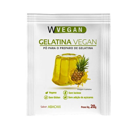 Gelatina Vegan 20g é um pó para preparo de gelatinas; simples e fácil de se fazer.